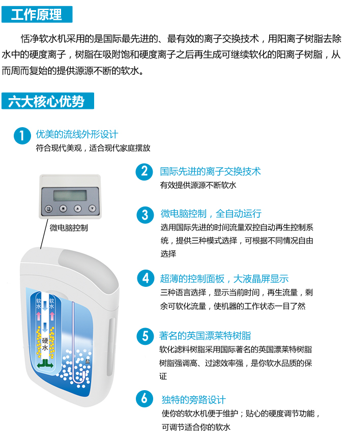 Tendge中央軟水機采用的軟水技術是目前最先進的、最有效的離子交換技術,采用離子交換技術去除水中的硬度離子,防止水垢生成并提高用水的舒適度。