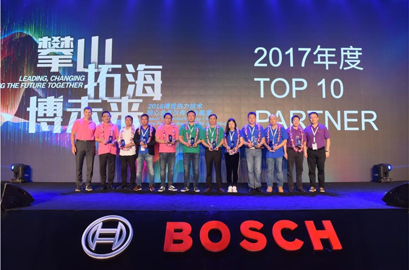 本次大會上,博世評選出了“十大合作伙伴”,以表彰在2017年取得卓越成績的合作伙伴,肯定其在業績、市場擴展、團隊合作上取得的成就。同時,也針對不同產品領域,頒發了“最佳銷售合作伙伴”、“最佳售后服務合作伙伴”、“最具成長合作伙伴”以及“年度旗艦展廳”等單項獎。